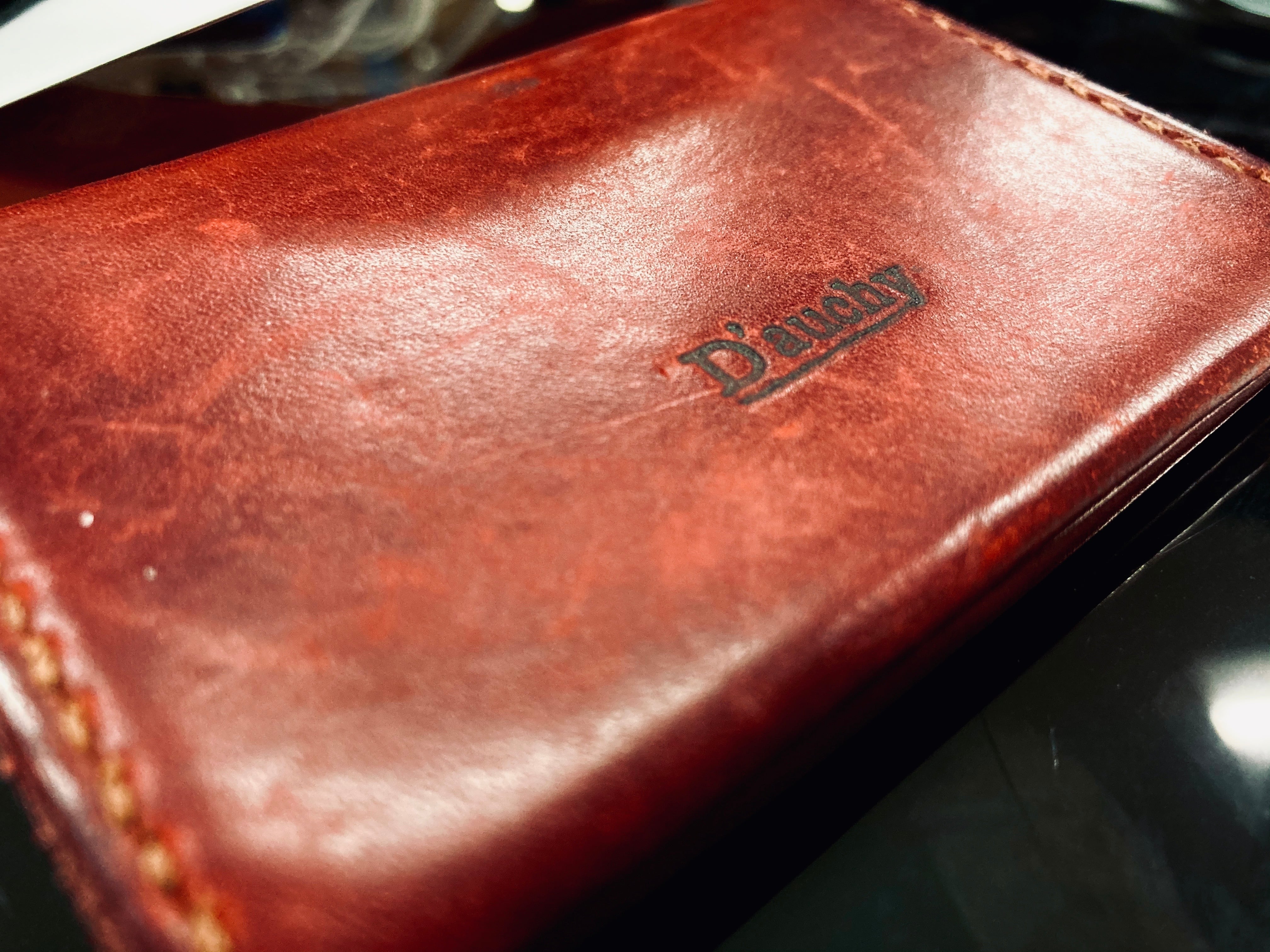 -------------------------------------------------------------- ★特徴 ・AirTagを入れても厚み15mmほどの薄型でミニマム財布です ・イタリアンレザー「BULGARO」を使用しており、1つずつ手縫いで縫製したものをお届けします ・海外旅行にはこれ!邪魔にならない!失くさない! これから徐々に海外旅行も可能になっていくなかで、日本で使用している長財布は治安の観点から少し海外では使用を躊躇うなと考えておりました。 そこでこの数年のコロナ禍で進んだキャッシュレスに対応した、ポケットに入れても邪魔にならない財布を作ろう!と思い、この製品を制作致しました。 最初はシンプルに必要最低限のカードとお札のみ入る形で制作しておりましたが、キャッシュレス時代とはいえ国内で使用する際には少しは小銭は出てきてしまうな…と思い小銭も少し入るように改良し、せっかくなら!とAirTagも収納できるスペースもあわせて設計し制作しました。 -------------------------------------------------------------- ★AirTag対応! 「手元から離れたときに通知」をオンにすることで有効になります。 wifiの有効範囲外になると通知がくるので10mほど離れるとiPhoneやApple Watchに通知が届きます。 もちろん、紛失の際には「探す」機能にて財布の現在地が探すことが出来、音を鳴らすことにより探すことが出来ます。 (AirTag別売) -------------------------------------------------------------- ★イタリアンレザー使用 イタリアはサンタクローチェ地区にあるLo Stivale社が製造する、表面がスムースでキメが細かく革厚1.5mmでも、芯のあるしっかりした質感のショルダー革です。 植物タンニン鞣しで染料仕上げ、バケッタ製法によりオイルがしっかり入った革なので、使い込むほどに味わい深い色に変化し、自然な艶が愉しんでいただける革になっております。 -------------------------------------------------------------- ★手縫いで縫製 工業製品にはないぬくもりのある手縫いでしっかり縫製しております。 糸1本づつロウ引きをし、一針々締めながら縫うことによりミシンでは出来ない強度、風合いを感じていただけると思います。 -------------------------------------------------------------- ★規格 幅 92mm 高さ 95mm 厚さ 13mm AirTag内包し、小銭カード6枚、札5枚入れても厚さ16mmほどです。
